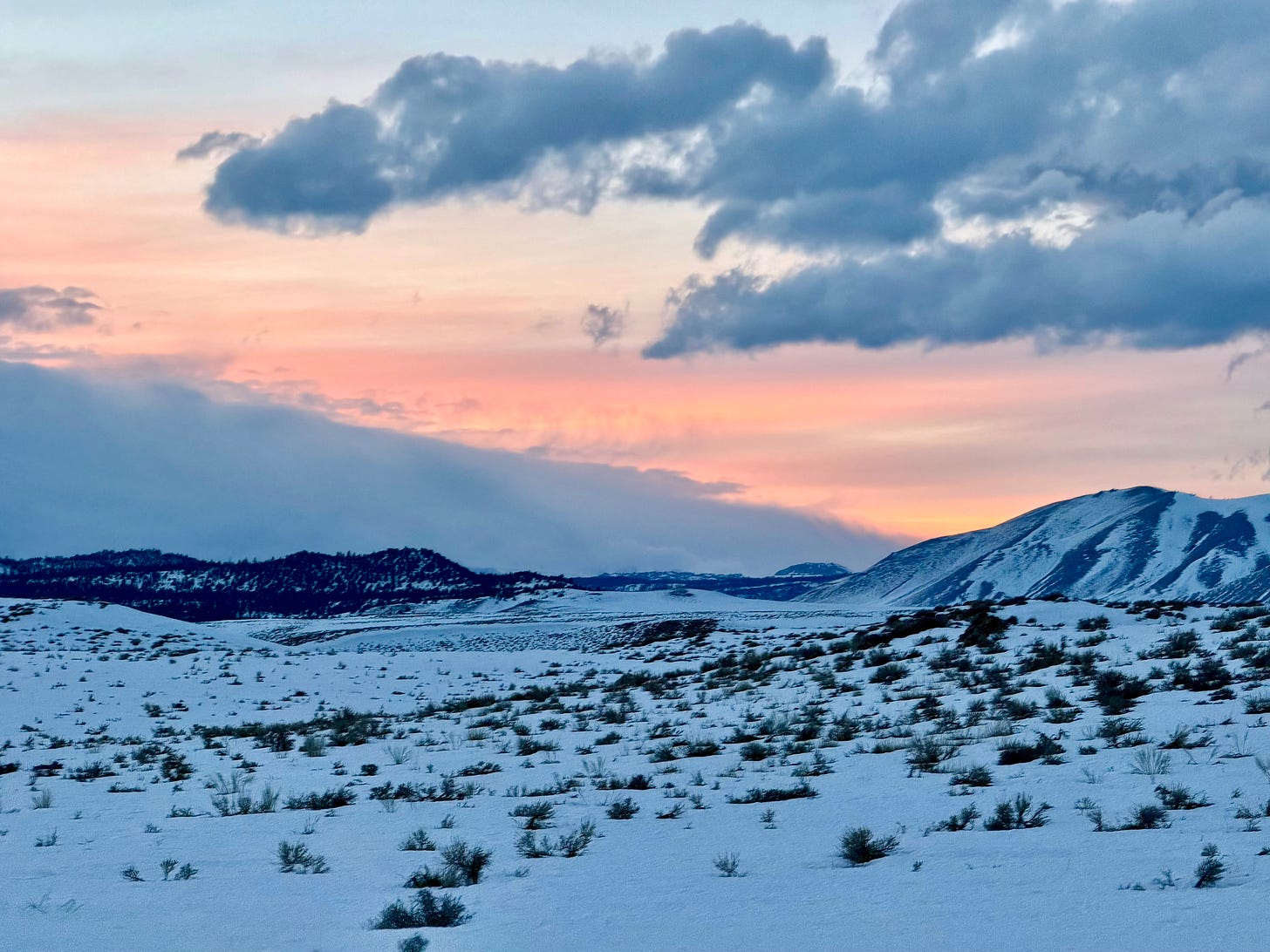 Eventually, the sky turned into dusk as the clouds broke for a moment to experience the classic pink and orange sunlight breaking through. I take a deep breath and continue skiing into dusk. Eventually, we reach the car where my hair and eyelashes are frozen, but I feel a sense of awe at how beautiful these incredible mountains are.